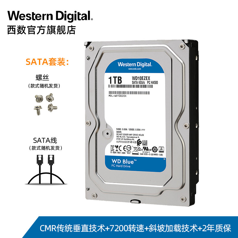WD西部数据机械硬盘1t WD10EZEX 西数蓝盘3.5寸...