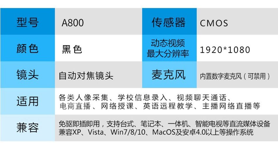 蓝色妖姬 A800 自动对焦网课视频考研复试上课摄像头电脑台...
